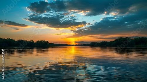 Obraz premium Sunset over the river with the reflection