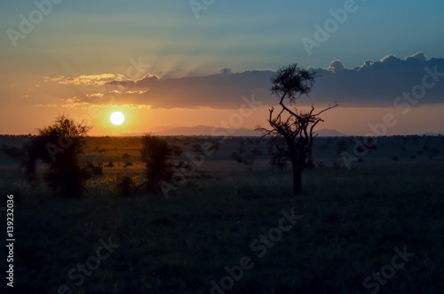© Demande Philippe, Obraz premium Sunset over the savanna
