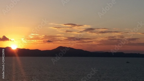 © Leandro, Naklejka premium Sunset over the sea and the mountains - Santa Catarina Coast - Brazil