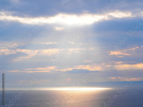 © Ange, Naklejka premium Sunset over the sea in Cornwall