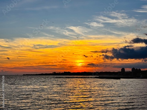 © Andrey, Obraz premium sunset over the sea in the old Nesebar