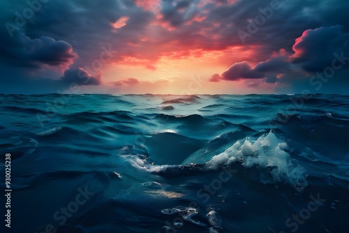 © Sumanta, Naklejka premium sunset over the sea. storm over the sea. golden hour photography. sea and beach. sea and sky. nature photography. moon over ocean water.