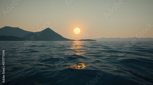 © BOJOShop, Naklejka premium Sunset over the Sea with Mountain Silhouette Coastal Landscape Photography
