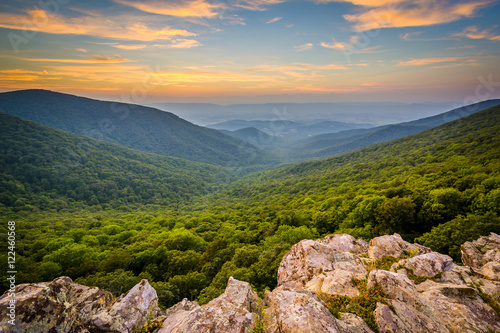 © jonbilous, Naklejka premium Sunset over the Shenandoah Valley and Blue Ridge Mountains from