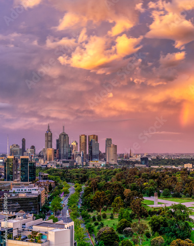© Andrew Robins, Fototapeta premium Sunset over the stunning Melbourne skyline