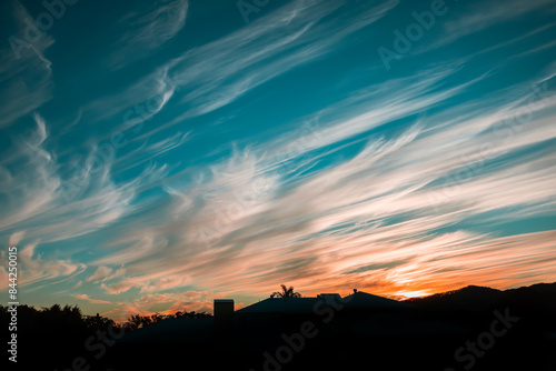 © IKT224, Fototapeta premium Sunset over the town, unban evening view.