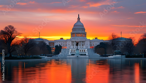 Fototapeta premium Sunset over the u.S. Capitol building washington d.C. Architecture reflective...