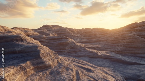 © @_ greta, Naklejka premium Sunset over the Undulating Beige Hills