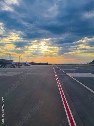 © ThorErik, Fototapeta premium Sunset over Trondheim Airport Værnes