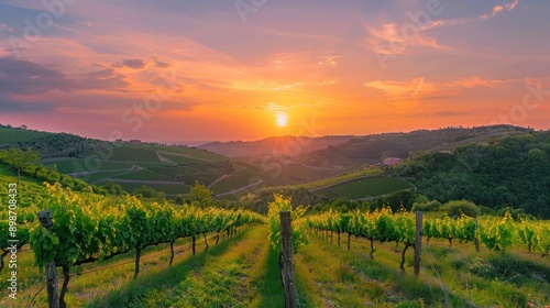 Naklejka premium Sunset over Vineyard in Tuscany