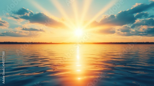Obraz premium Sunset over water, vibrant colors, dramatic clouds