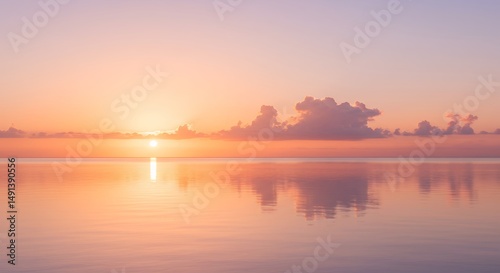 © Aufa, Obraz premium Sunset Over Water with Clouds Reflecting