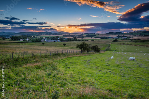 © drhfoto, Naklejka premium Sunset over Whittingham in River Aln Valley / The River Aln runs through Northumberland, passing through Whittingham Village seen here as the sun sets behind the Cheviot Hills