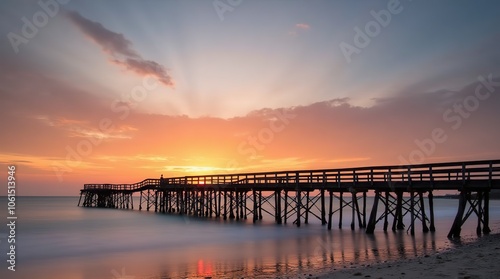 © Viktor_D, Fototapeta premium sunset overlooking a wooden pier
