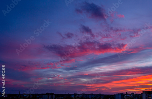 Naklejka premium Sunset panorama, beautiful evening sky in bright colors