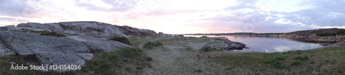 © Christoph Nanz, Obraz premium Sunset panorama with stony beach near Verdens end in Norway