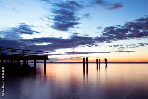 © abp_247, Naklejka premium sunset pier with clouds and soft water