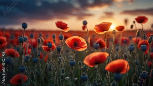 © Reazy Studio, Fototapeta premium Sunset Poppy Field Vibrant Red Flowers at Golden Hour