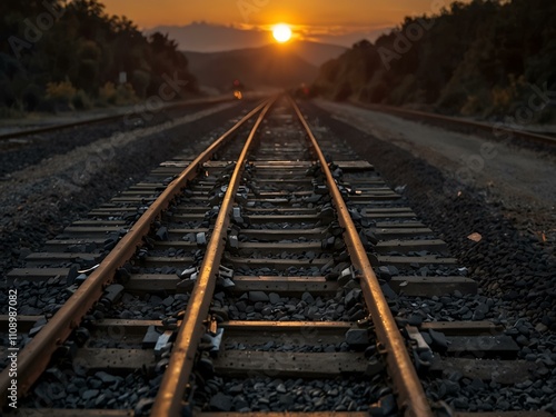 © claudunia, Obraz premium Sunset railway tracks transporting coal.