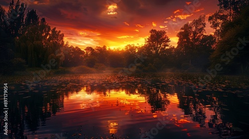 © benjamas, Obraz premium Sunset Reflected in Water.