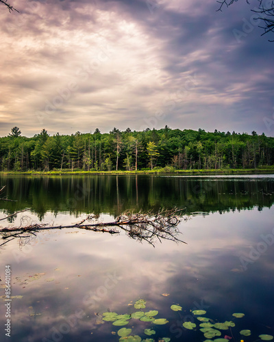 Fototapeta premium Sunset reflected on calm water