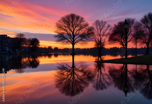 © Autism in Focus, Fototapeta premium Sunset Reflection of Trees in Calm Water