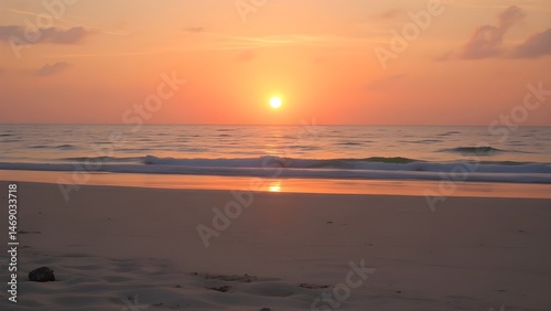 Fototapeta premium Sunset Reflection On Still Sea and Tropical Sand Scene