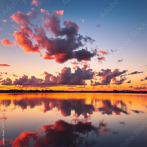 © Hamida, Obraz premium Sunset Reflection Over Calm Waters