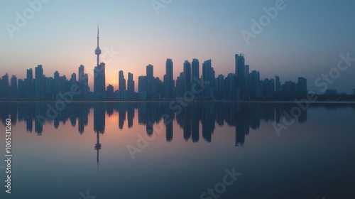 Fototapeta premium Sunset Reflection Over Urban Skyline