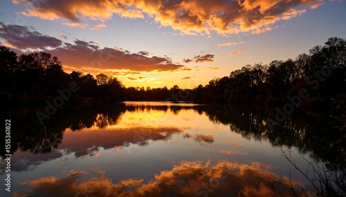 © hafid, Obraz premium Sunset Reflection Pond Silhouette.