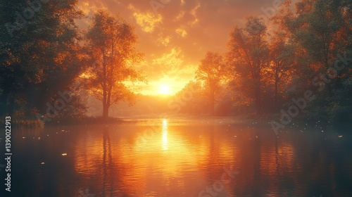 © arlisa, Obraz premium Sunset reflection tranquil nature scene