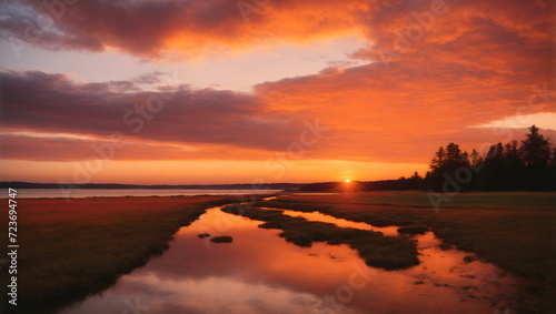 © PetrovMedia, Obraz premium Sunset reflections landscape illustration