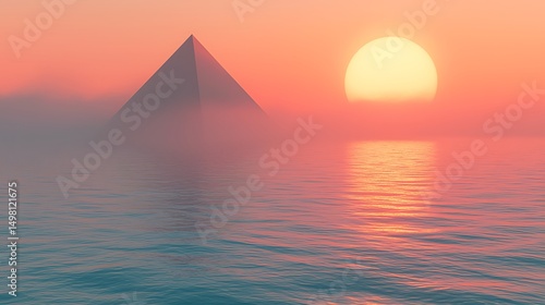 © Sompong, Naklejka premium Sunset reflections on the great pyramid giza landscape photography serene environment distant view ancient wonder