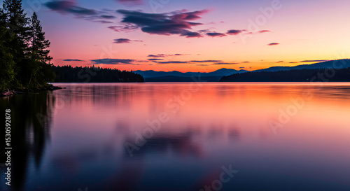 © dimas, Obraz premium Sunset Reflections on Tranquil Lake