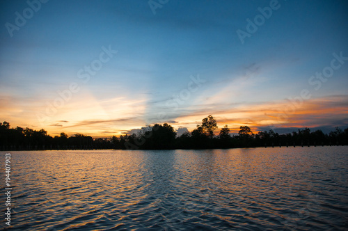 © Dusadeephan Phajee, Naklejka premium Sunset river and cloud