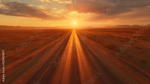 © subur, Fototapeta premium Sunset Road to Horizon: A Desert Highway at Golden Hour