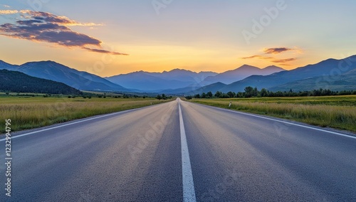 © heri, Fototapeta premium Sunset Road Trip Through Majestic Mountains