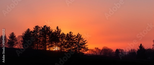 Obraz premium Sunset Scene Featuring Pine Tree Silhouettes