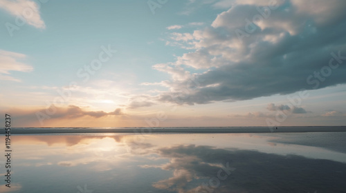 Fototapeta premium Sunset scene in lake of Orient in Aube, France beautiful view of sea and sky in the morning, natural background