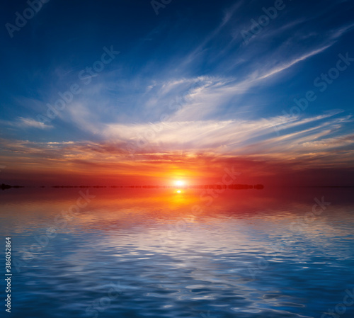 Fototapeta premium sunset scene over lake water