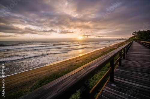 Fototapeta premium Sunset seen from the dock with overcast skies and sea vistas