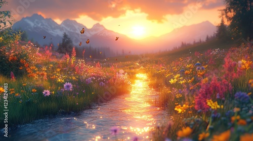 © Factory Stock, Obraz premium Sunset Serenity: A Magical Meadow