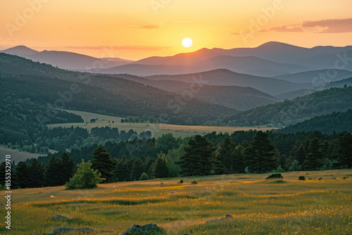 © Sviatlana, Obraz premium Sunset Serenity Over Rolling Hills