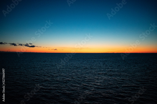 © Jemelee Alvear, Obraz premium Sunset showing a golden or orange horizon with a dark blue sky.