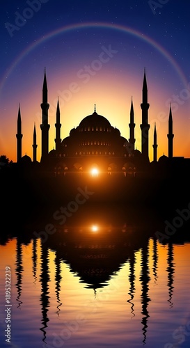© Wandi, Fototapeta premium Sunset silhouette of a mosque.