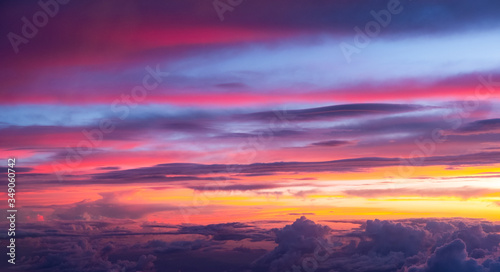 © Amonsak, Fototapeta premium Sunset sky background vivid color sky background. view from plane.
