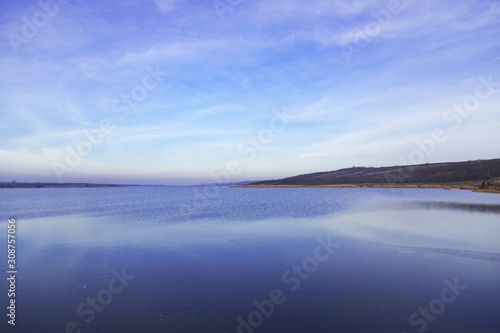 Fototapeta premium sunset sky blue and pink over a lake in Gagauzia