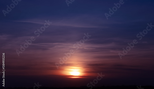 Fototapeta premium Sunset Sky,Cloud Background,Sunrise Sky Orange,Pink,Blue in Countryside,Nature Landscape Dramatic Golden Hour with twilight Sky in Evening,Horizon Banner Sunlight and cloudy in Autumn,Winter season