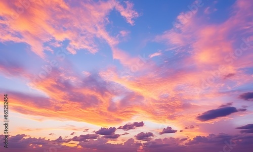 Obraz premium Sunset Sky Clouds in the evening with Red, Orange, Yellow and purple sunlight on Golden hour after sundown, Romantic sky in summer on Dusk Twilight