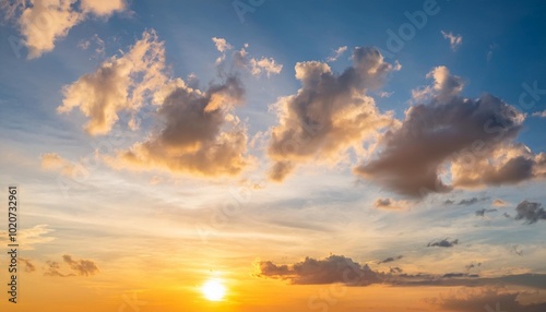 © Jesus, Fototapeta premium sunset sky clouds vertical in the evening on summer season with orange yellow sunlight on blue sky background